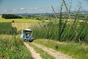 Au moment de la rosée et à la lueur des premiers rayons de soleil, enivrez-vous du délicat parfum des houblonnières qui arrivent à leur apogée à cette période de l'été. Après une premier tronçon réalisé à pieds et accompagné d'un guide, montez à bord d'une remorque qui vous emmènera tout droit vers un petit-déjeuner bien mérité après cette escapade revigorante et olfactive !